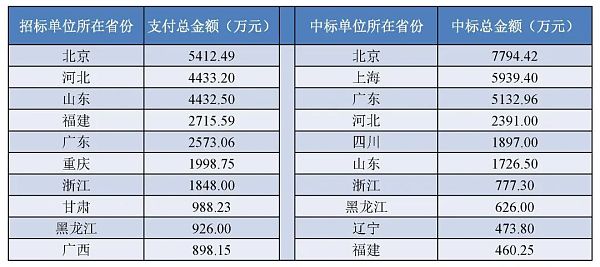(二)北京廣東招投標較為活躍,同省企業中標占比較大