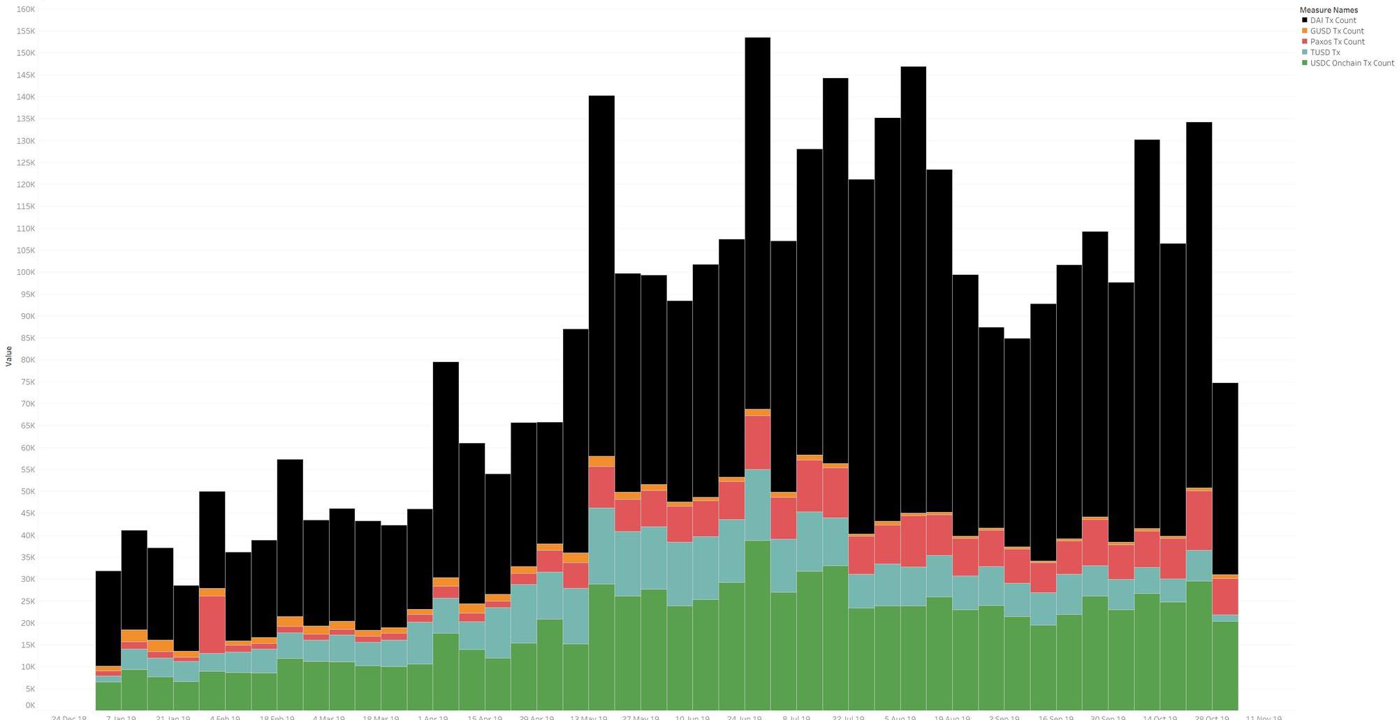 USDC和DAI很可能會由借貸市場和交易需求推動更多的交易量。觀察這一演變過程將非常有趣。