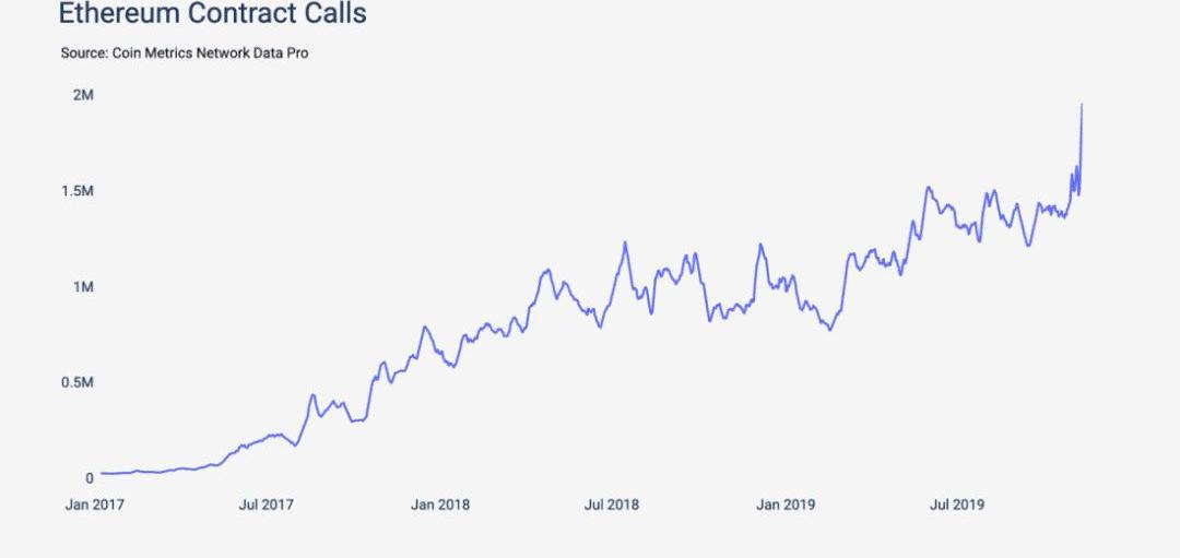 以下是根據7日滾動平均值繪制的以太坊合約調用次數統計表。