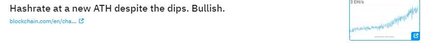 而RedditID為Papa_L0u的用戶則在盤面以外尋找到了一個對比特幣后市持看漲觀點的理由,他表示,雖然價格下跌,但是哈希率仍在不斷創造新高,這是一個看多的信號。