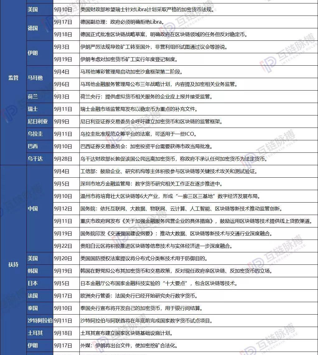互鏈脈搏2019年9月份區塊鏈政策信息統計: