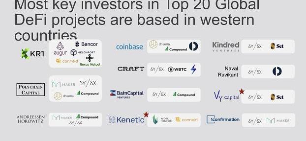 全球Top20的DeFi產品的主要投資者來自西方國家