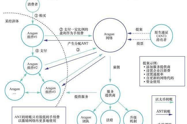 Aragon網絡上的原生通證被稱為Aragonnet-worktoken。ANT代表用戶在其所在DAO中的通證份額大小。DAO中的成員可以就組織的規則和治理發起提案,之后其他成員根據自身所持有的通證份額大小進行投票,以決定是否接納該提案。需要指出的是,提案的發起者也需要預存一定的ANT作為抵押,以促使提案者發起有益提案。