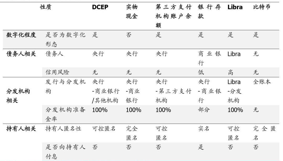 3從DCEP的M0屬性比較其與其他”貨幣”