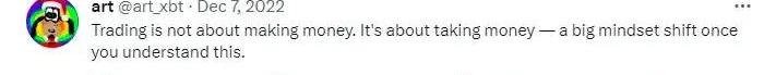 XRP/HKD-3.96%今天我要開始一個采訪系列,采訪的對象是我在Crypto領域發現的有趣的人。這個系列的第一位采訪對象是我去年在Twitter上發現的Crypto交易者?@art_xbt。他會對自己的交易進行深刻反思和并進行月度總結,我感覺大為受用。舉個例子,看看他發布的這篇推文中的7條反思就知道了。