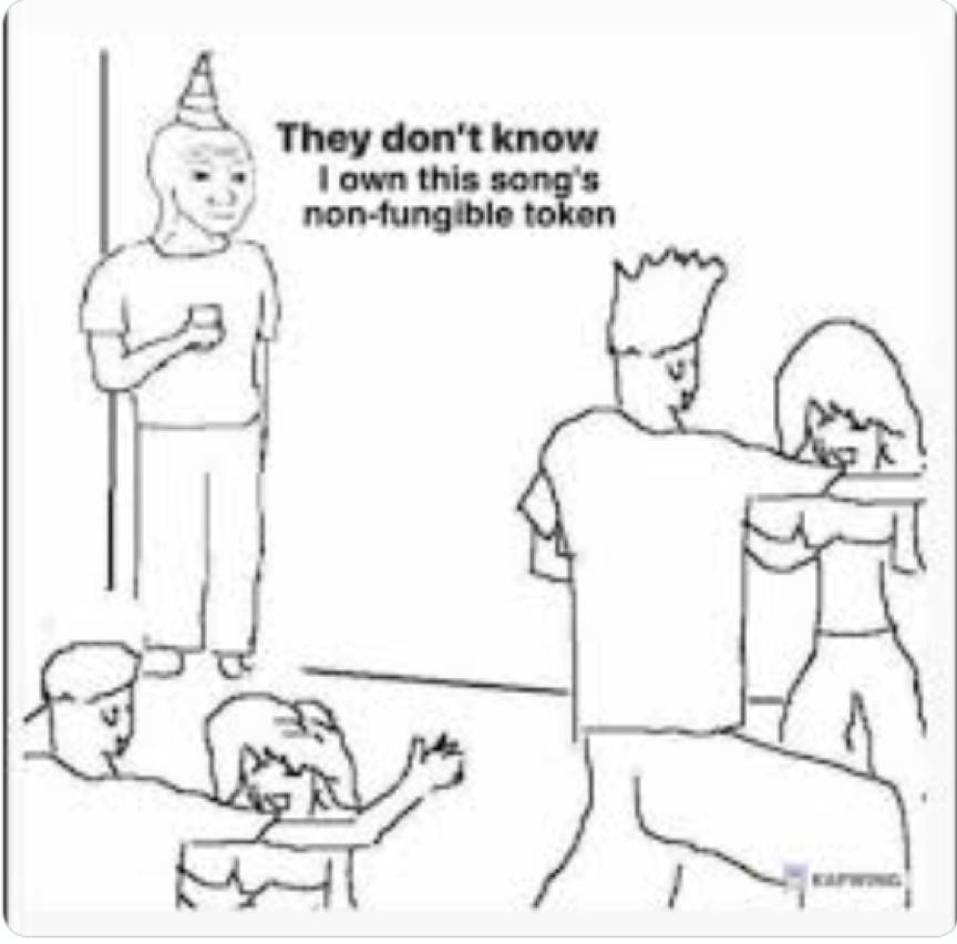 這幅畫很有意思,因為它反映了真實情況,世界上每個人都可以花 1 美元下載一首歌曲,然后享受美好的音樂,但一首歌的 NFT 又有什么價值呢?