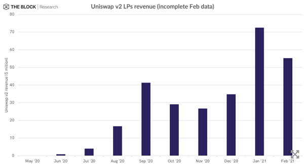 就目前來看,Uniswap可能是收入最高的DeFi協議,也是最容易理解的DeFi協議。用戶每次執行代幣兌換交易時,0.3%的交易額就會作為流動性提供者費用存入流動性池內。