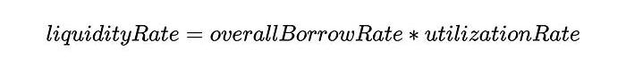 正如我們可以在DefaultReserveInterestRateStrategy.sol合約中看到的那樣,liquidityRate是通過以下方式定義的: