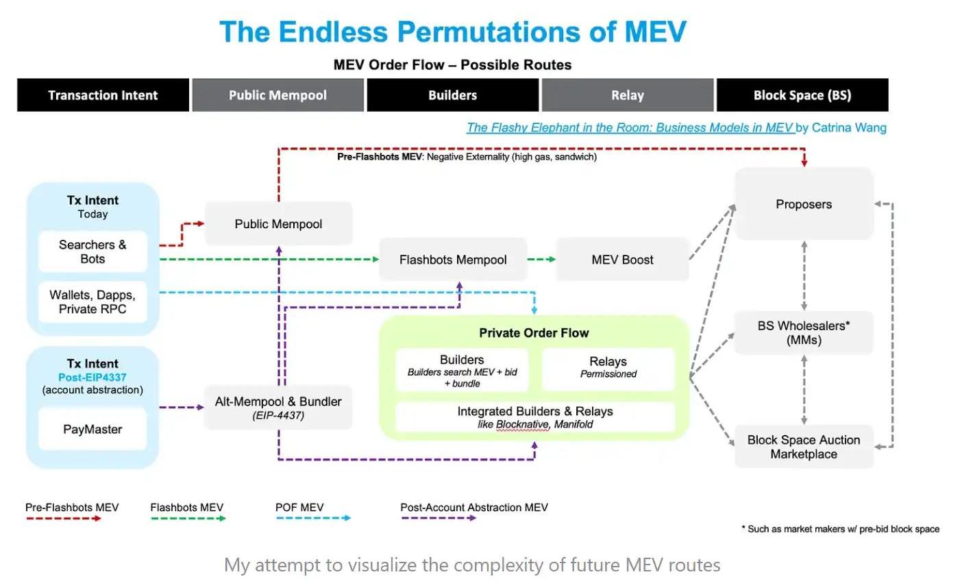 此外,值得提一提「沉睡的巨龍」Metamask,根據一些研究,它約占ETH交易的70%。想象一下,Metamask本身成為一個構建器網絡,通過創建自己的私有內存池來提取和共享MEV,會涉及中心化吧?