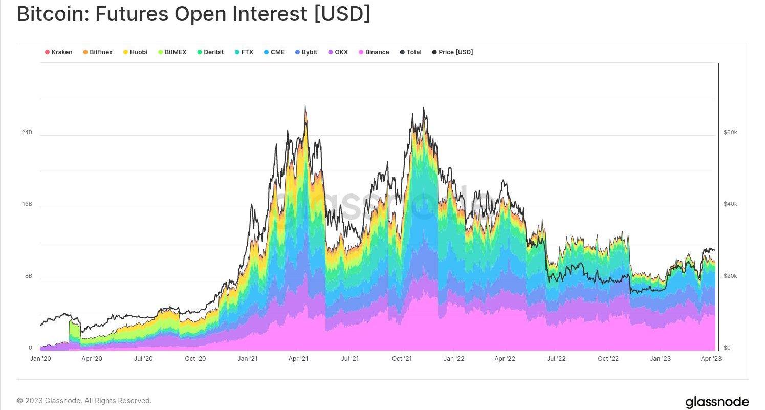資金利率是正的……但幾乎可以說沒有。你可以通過做空$BTC賺取2%的收益.....或在貨幣市場上存入5%資金。以BTC計價的總未平倉合約已經耗盡價值1年的杠桿,基于美元的未平倉合約回到了2020年歷史高點之前的20,000美元水平。