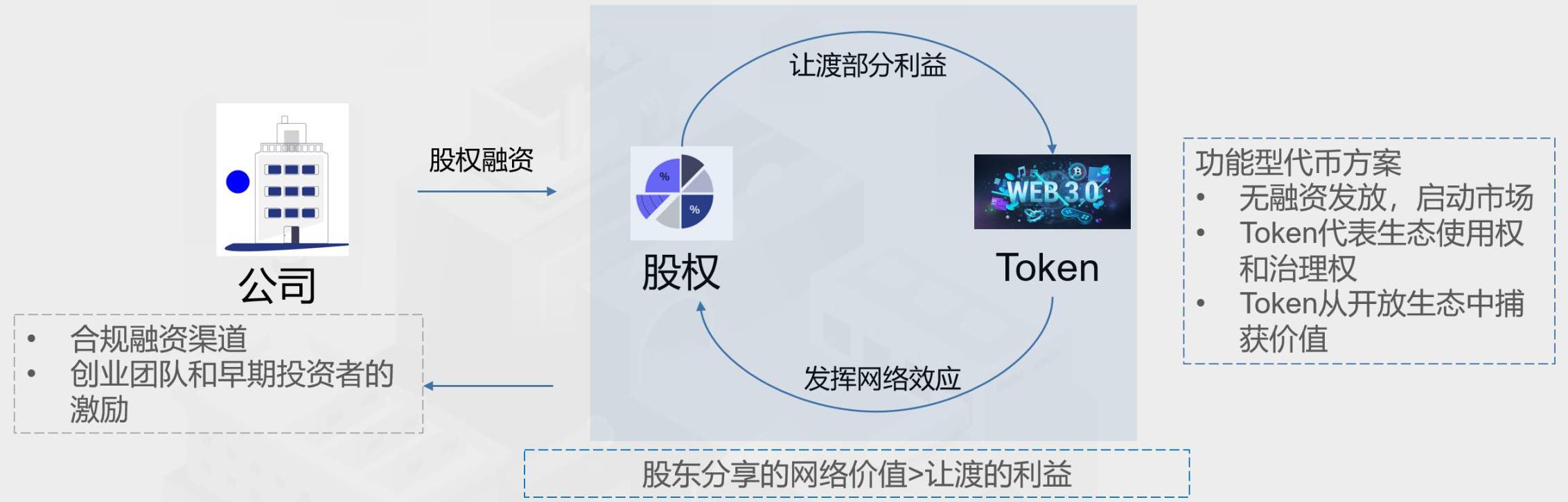功能型代幣代表數字產品和服務的使用權。只有在持有某個網絡、系統或應用發行的功能型代幣時,才有權使用相關產品和服務。生態應用和用戶數量越多,市場對功能型代幣的需求也會越大。功能型代幣也是領取其他權益的憑證。比如,項目方將持有某一種代幣的地址鎖定為目標群體,向該地址空投項目的治理代幣。在實踐中,功能型代幣可以作為生態積分來免費贈送,以激勵用戶、啟動市場;功能型代幣可以沒有「發行、銷售和認購」等融資行為,代幣的價格發現靠二級市場交易形成。功能型代幣的價值來源包括:1.使用網絡的「許可」;2.用來付Gas費和傭金;3.公司用部分利潤回購;4.社區治理的權利憑證;5.優先領取空投和加入白名單。功能型代幣是網絡效應的價值單位。