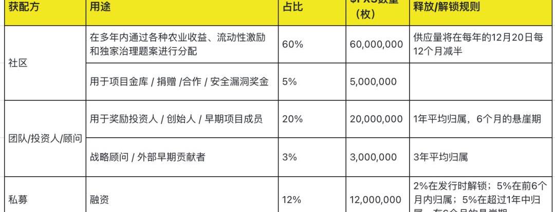 $FXS在創世階段的供應設定為1億枚,具體的分配以及釋放見下圖。以下大部分的代幣分配已經解鎖,除了用于農業收益/流動性激勵和戰略顧問的部分還在每天釋放中。