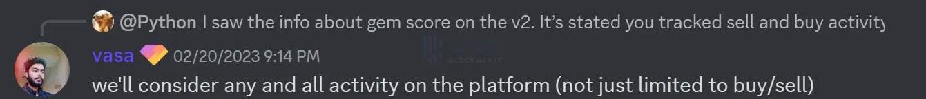 關于計分的規則,Gem團隊一直守口如瓶,只在Discord透露過「買賣NFT不是唯一被計分的活動」。連GemV1的活動是否會被計分,筆者也沒有搜尋到明確的答案,只有「暫時沒有相關信息」的回復。