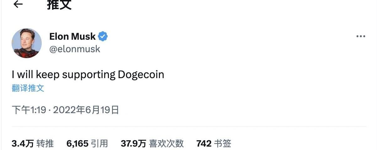 2022?年?5?月?13?日,馬斯克發布推特,并稱贊狗狗幣具有成為貨幣的潛力。