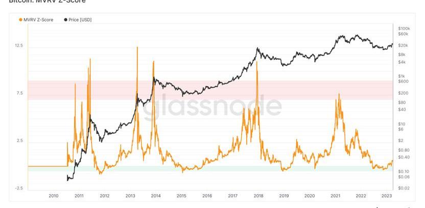 長期趨勢指標MVRV-ZScore以市場總成本作為依據,反映市場總體盈利狀態。當指標大于6時,是頂部區間;當指標小于2時,是底部區間。MVRV跌破關鍵水平1,持有者總體上處于虧損狀態。當前指標為0.62,脫離了綠色抄底區間。