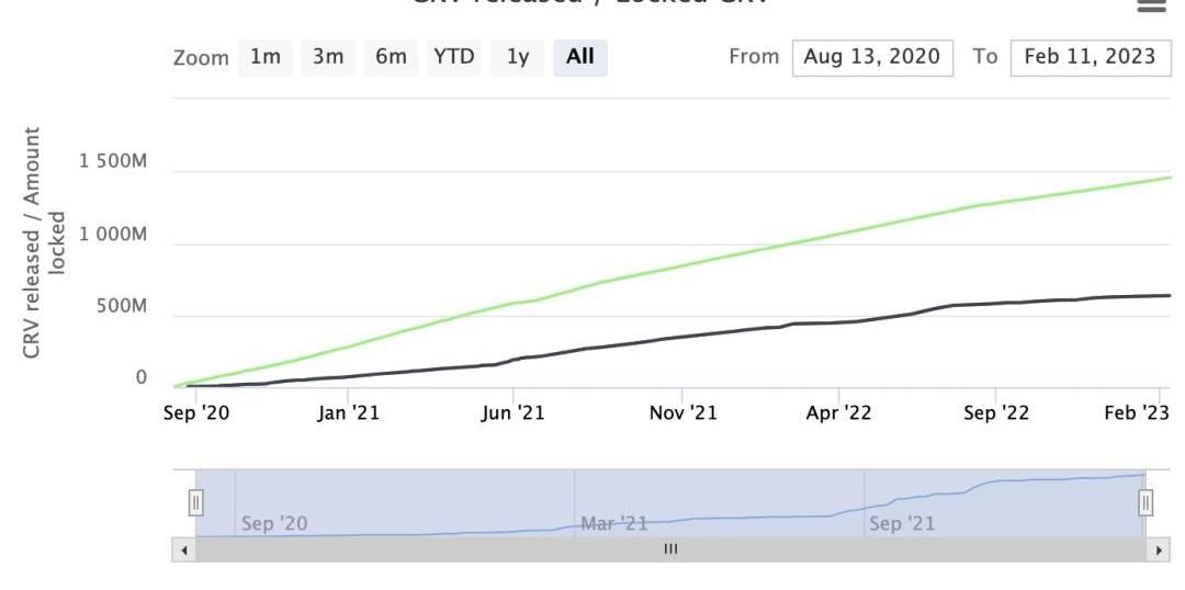 CRV的初始供應量~12.73億,總供應量~30億,初期的日增發量~200萬。這些增發的CRV會根據Gauge控制器里的測量結果,按比例分配給將LPtoken質押到Gauge中的用戶,即Gauge中有權重的用戶。