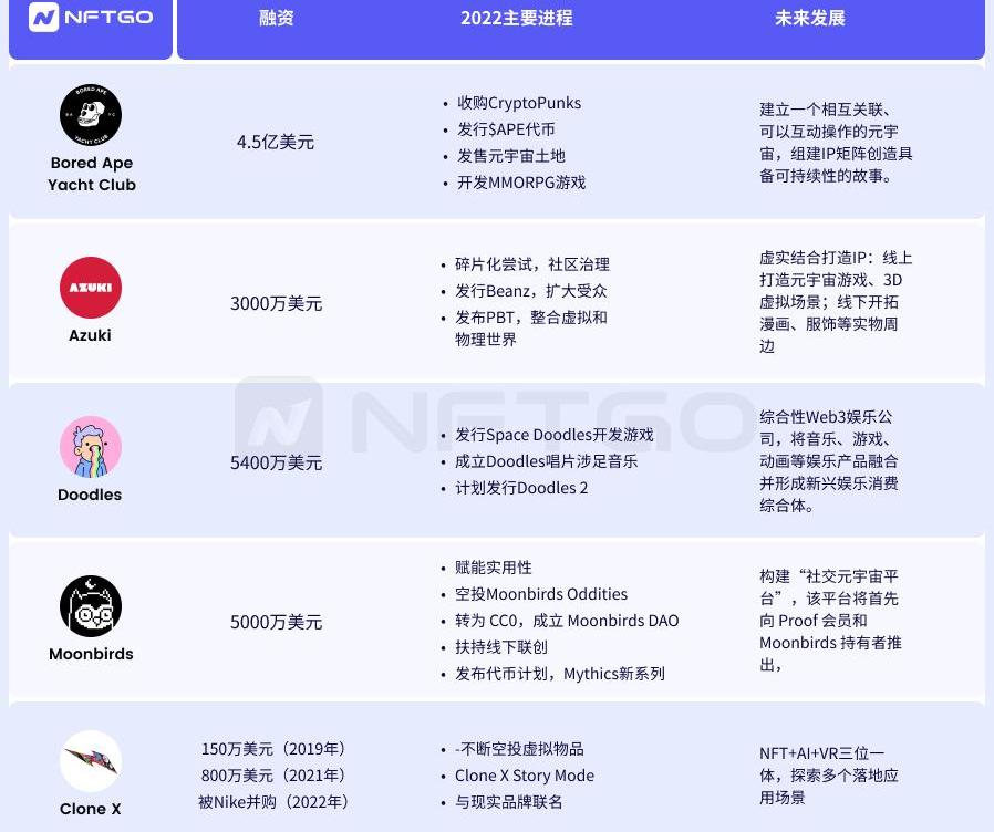 4.一些先鋒的NFT項目方開始逐漸將想法落地,它們均經歷了融資之后的“脫虛向實”,利用增發衍生NFT來擴大用戶群體。