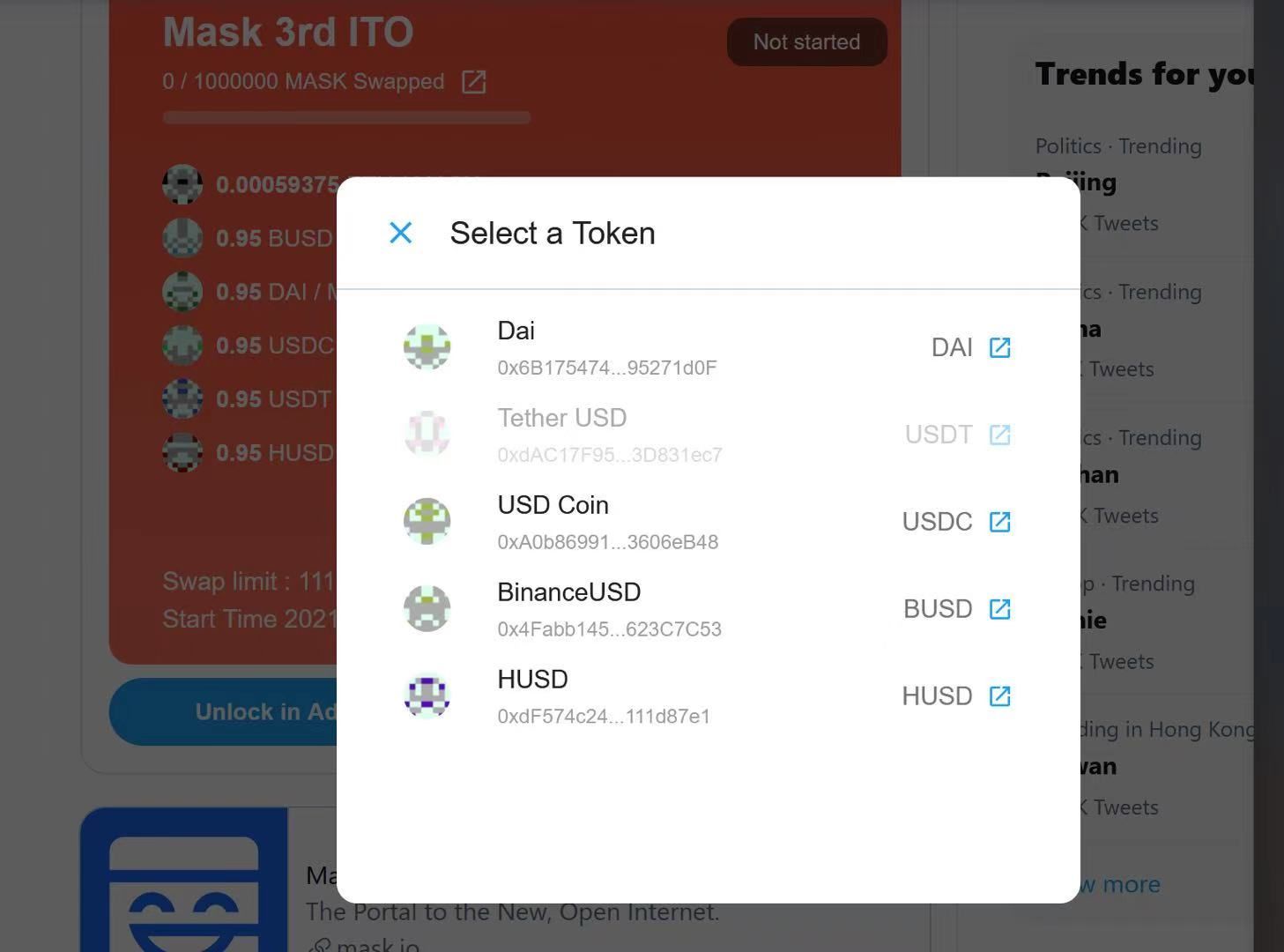 到了9月,Mask Network上線了新的功能,支持用戶在Twitter上實時查看代幣的價格,并進行交易。當用戶在瀏覽Twitter頁面時,只要將鼠標懸停于 $ETH 或 $UNI 樣式的代幣標符上,Mask?Network就會自動識別相關通證信息并鏈接至 Uniswap 交易對,方便用戶通過直接進行代幣交易,代幣的信息則由 CoinMarketCap 提供。