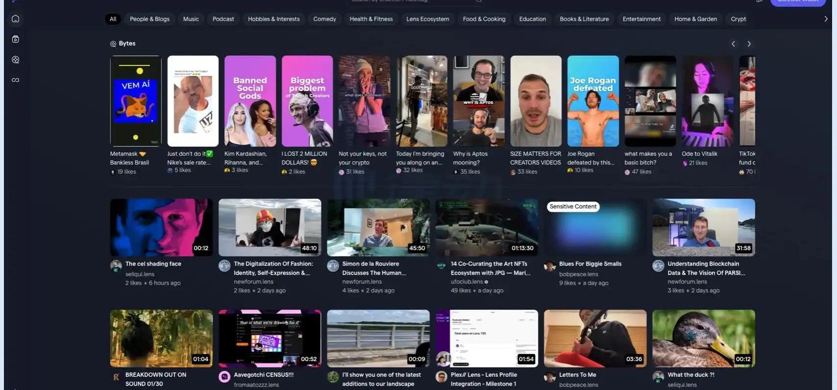 LensTube,LensTube是一個去中心化視頻共享平臺,旨在成為Web3.0的Youtube。LensTube的視頻內容存儲在去中心化視頻存儲設施Livepeer上,用戶可以基于圖譜NFT與自己的粉絲分享和欣賞視頻,并通過打賞、收藏等方式獲得來自社區的獎勵收益。