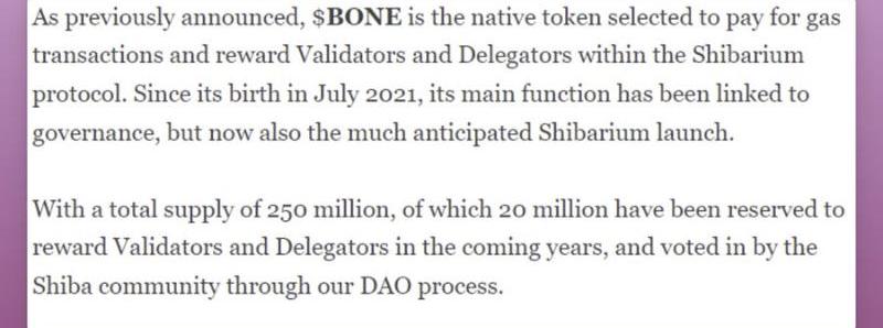 更有趣的是,$BONE將被用來支付Gas,并獎勵即將推出的Shibarium中的驗證者/委托者。