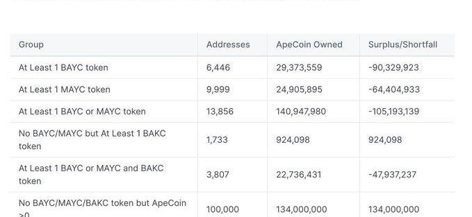 在$APE開啟Staking之前,鏈上數據顯示,$APE代幣持有者和BAYC/MAYC/BAKC持有者之間存在巨大的不匹配。