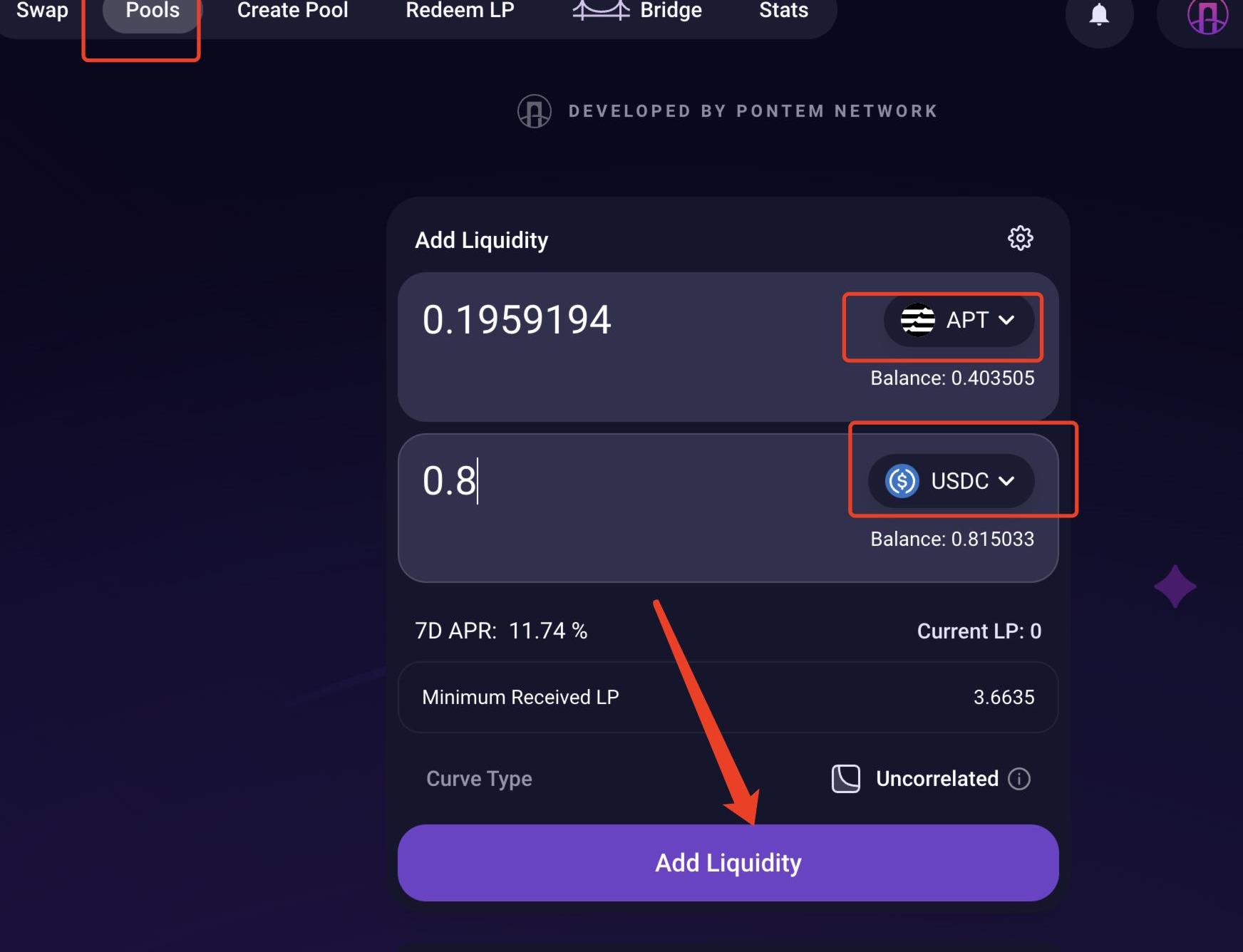 ?鏈接pontem錢包,選擇Apt和usdc直接swap,錢包確認交易