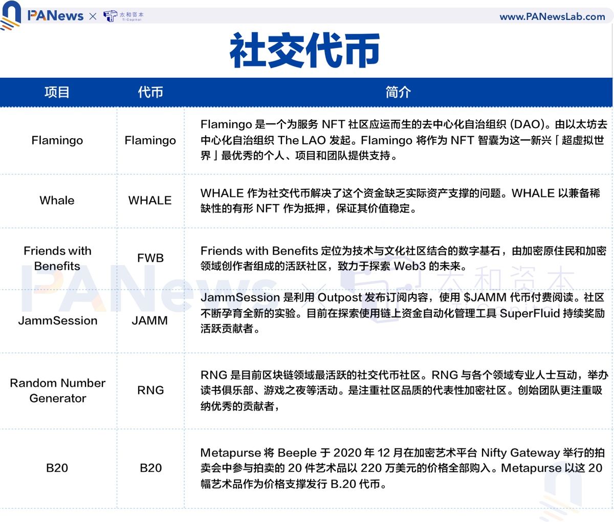 WHALE:WHALE是2020年5月由NFT巨鯨WhaleShark發行的,以其擁有的NFT作為間接支撐發行的一種代幣,玩家可質押有價值的NFT作為擔保物來獲得 WHALE代幣。這些NFT將被保存在WHALE的The Vault中,由Whale DAO 管理,WHALE 持有者也可購買或租用 The Vault 里的 NFT作品。