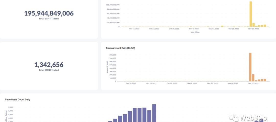 從鏈上數據來看來,封堵也起到了立竿見影的效果:封堵后的鏈上交易萎縮到1/10。不過在28號之后仍有小幅上漲趨勢,說明嚴打下,投機用戶對uHGT的前景和預期仍在持續增長。
