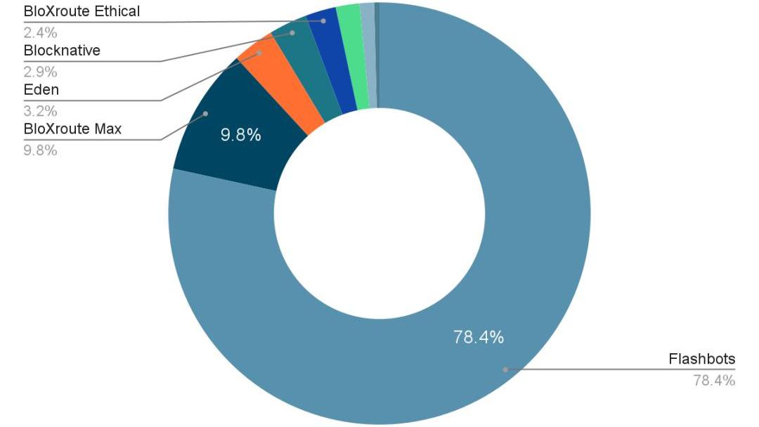 截至2022年11月23日,Flashbots的中繼處理了大約80%的MEV-Boost區塊,而BloXroute的中繼處理了大約14%的區塊。