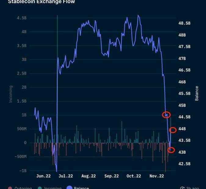 如圖所示,CEX穩定幣的流向在11月20日迎來了凈流出到凈流入的反轉。11月14日至19日,CEX的穩定幣總量從445.5億美元減少至430.7億,供流出14.8億美元,流失占比為3.3%。11月20日則漲至439.8億,當天新增9億美元,相比上周一減少5.7億美元。