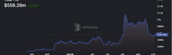 Optimism的TVL從9月到10月之間保持在9億美金上下,直至FTX事件之后出現斷崖式下跌,觸及5.17億美金,下降了42.55%,所受影響較大,目前穩定在5.56億美金左右。