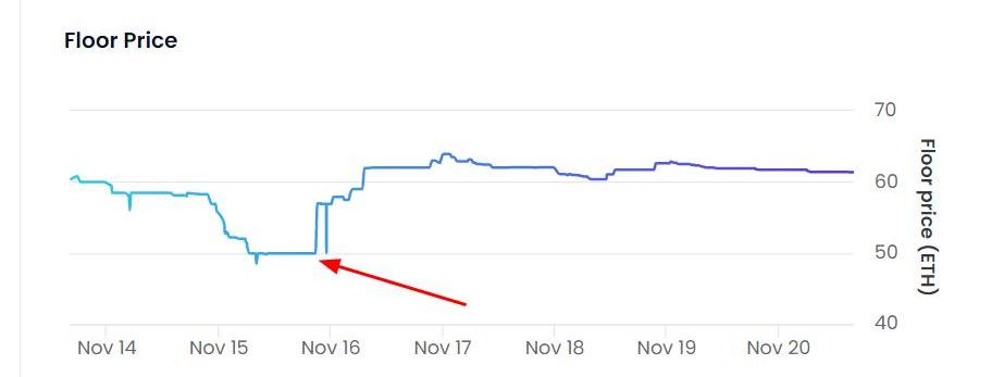 XRP/HKD+4.09%根據Opensea的數據顯示,無聊猿的價格已經跌破了50以太,截止目前是61.35以太,如此大的跌幅,也成功打破了無聊猿在NFT質押平臺BendDAO的地板價,導致超過40只猴子遭到了清算,這也進一步導致了無聊猿價格的下跌。