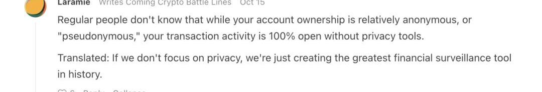 換句話而言:如果我們不關注隱私,我們只是在創造歷史上最偉大的金融監控工具。