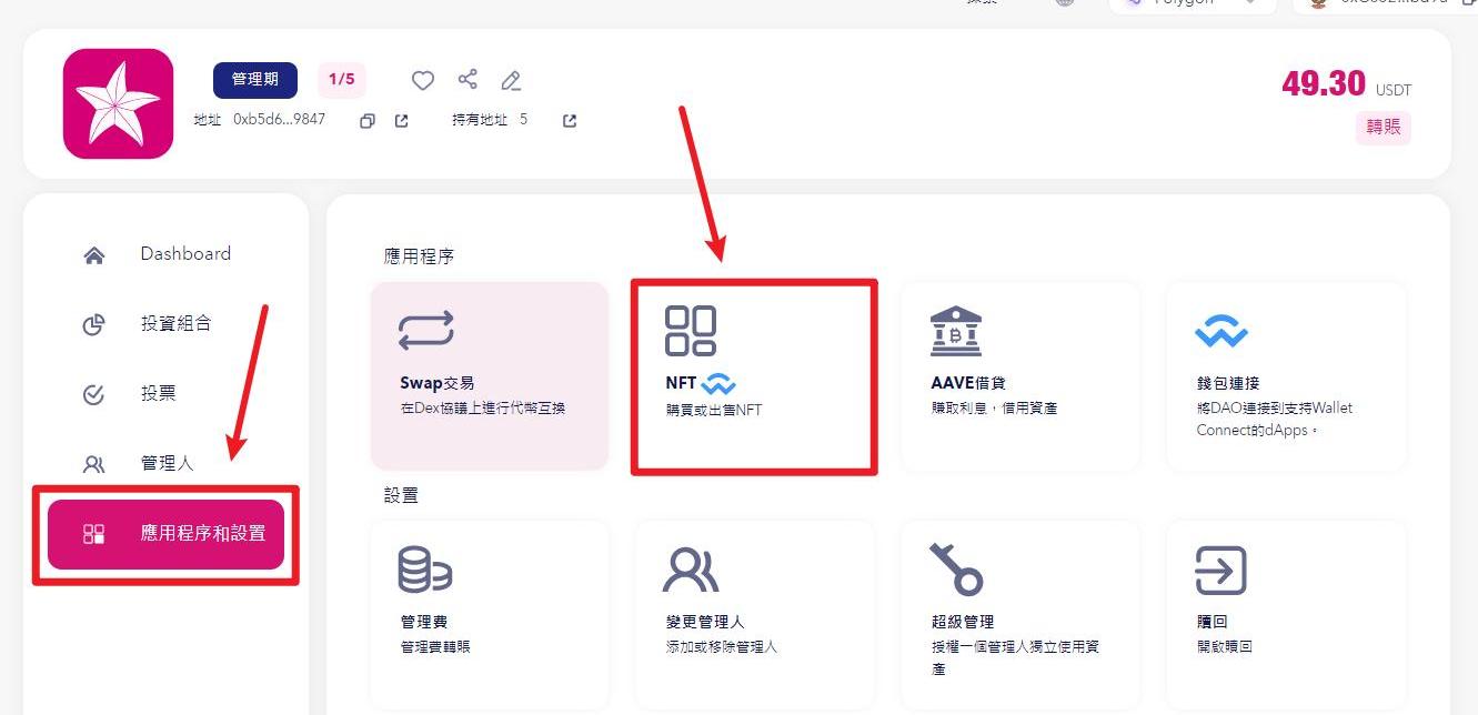 點擊網頁上方的,然后點擊,找到你剛剛創立的DAO,點擊它。