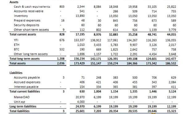 這些報告里會包含一些比純數據更多的內容,包括支出的分類、支出目的、代幣回收協議以及協議即將發生的決策變化。Yearn在最近的報告中指出,他們最多的現金支出是給監督和管理Yearn保險庫的開發人員。但他們也提到了希望不再為管理者提供薪酬,而是為所有DAO貢獻者建立利潤分享模型。此外,Yearn還記錄了他們的資產和負債。