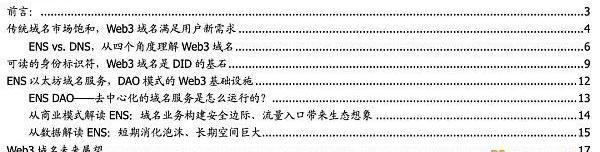 NFT化,二級交易值得期待。Web3域名以NFT為載體,解決了以往域名流轉的諸多問題,使域名流動性變得更強。同時,由于開放生態的特點,任何平臺和用戶都可以搭建自己的二級交易應用,提供個性化服務,進一步促進了流動性。目前ENS也出現了類似3digitDAO之類的玩法,NFT與域名結合帶來了玩法探索空間。