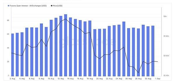 貨幣流動性整體緊縮。美聯儲高官傳遞鷹派發言,聲稱明年早些時候加息至4%以上,明年降息無望。美元指數徘徊20年新高。每次美國經濟衰退,市場泡沫破滅,都是美聯儲加息導致,無一例外。美股指數8月共跌4%,加密市場跟隨美股調整。