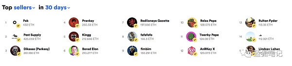 在Rarible上最近30天的頂級賣家,銷售了432個ETH,價值大約80萬美元,收入非常高;而一些頂級的收藏家,例如著名的0x_b1,最近30天,買入了580.343ETH,花費了大約100多萬美元。一些頂級玩家在瘋狂收貨。
