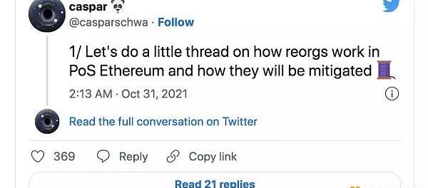 無論對攻擊者施加何種懲罰,社區還必須共同決定不誠實的區塊鏈是否實際上無效,并且社區應該建立在誠實的替代鏈上。誠實的驗證器可以集體同意構建在社區認可的以太坊分叉之上,例如,在攻擊開始之前可能已經分叉了規范鏈,或者強行移除了攻擊者的驗證器。誠實的驗證器將被激勵在該分叉鏈上構建,而建立在以太坊上的交易所和應用可能更喜歡在誠實鏈上,并會跟隨誠實的驗證器進入誠實的區塊鏈。然而,這將是一個極其混亂的治理挑戰。一些用戶和驗證者無疑會因為切換回誠實鏈而輸掉資金,攻擊后驗證的區塊交易可能會被回滾,從而擾亂應用層,這完全沖擊了傾向于相信「代碼就是法律」的用戶。此外,一些用戶,甚至可能是機構用戶,他們會通過精明或機緣巧合的方式從不誠實的區塊鏈中獲益,并可能反對分叉以保護他們的收益。有人呼吁社區對超過51%的質押攻擊進行應對演練,以便能夠快速執行合理的協調緩解措施。Vitalik在ethresear.ch以及Twitter上都進行了一些有益的討論。