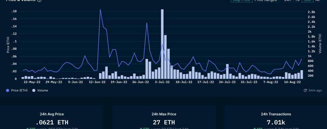 所有NFT市場的交易量在7月飆升,此后一直保持每天200至600ETH的交易量。目前,ENS地址的平均售價為0.06ETH,是鑄幣廠價格的20倍。