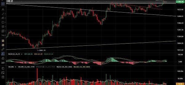 以太坊昨日走勢連陽上行突破1780壓制來到1817一線承壓回落,低位跌至1750附近支撐反彈,目前行情處于高位震蕩,四小時級別行情以十字陽k收尾處于ma7上方,macd多頭逐步縮量,kdj三線死叉,但回踩力度不大,可以圍繞ma7去開多,日線級別多頭排列均線抬頭,macd空頭轉多雙線粘合震蕩,kdj三線金叉向上,多頭趨勢已形成,做回調風險比低多大,思路上建議回踩做多為主,上方壓力1800-1850,下方支撐1750-1730